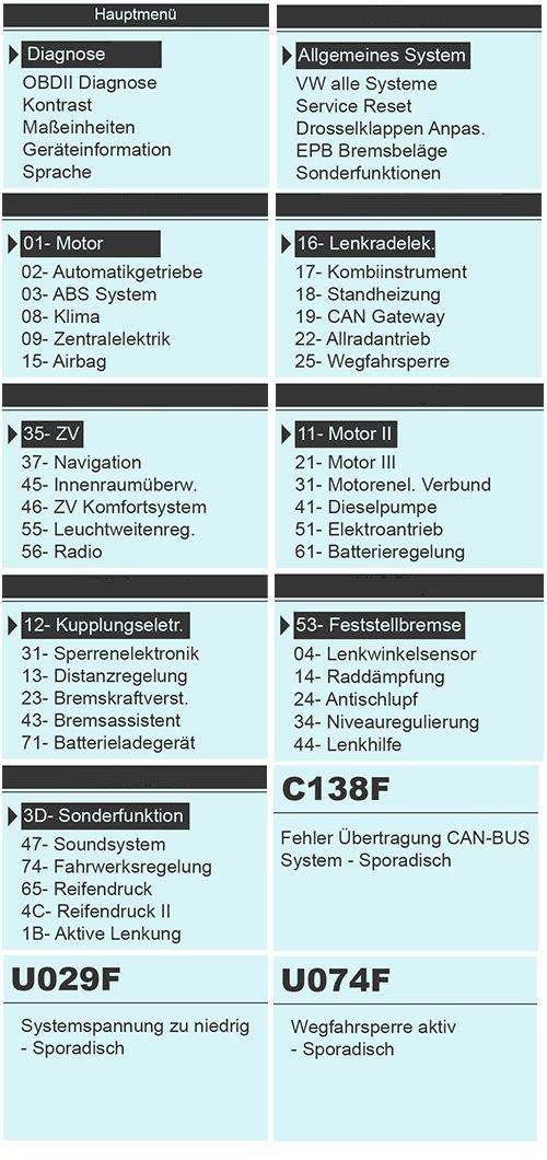 - Fehler lesen / löschen aller Steuergeräte