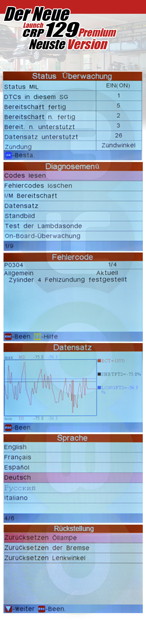 Downloads "Launch CRP129 Premium Motor Getriebe ABS Airbag Öl Service Bremse etc.."