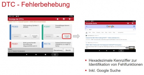 - Suchen und Übersetzen von Diagnose-Fehlercodes im Internet